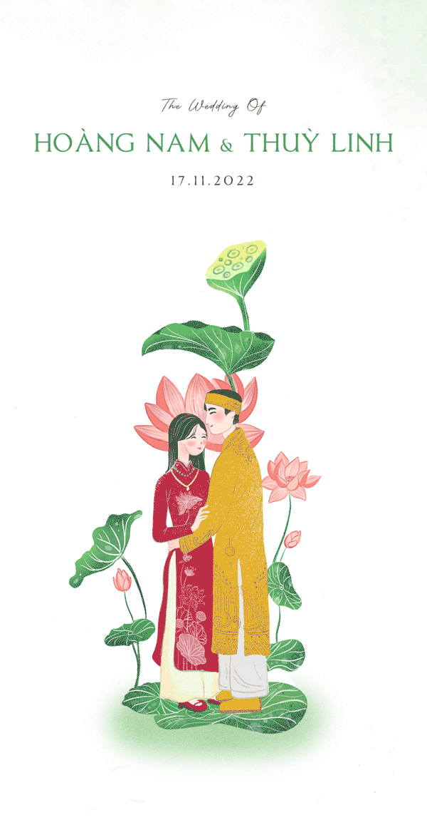 “Tiếng trái tim đôi ta đập thật nhanh. Thì thầm lời yêu thương. Ngày tình về chung đôi...” Sau bao nhiêu chờ đợi, cuối cùng ngày vui của chúng ta cũng tới rồi. Cảm ơn vì mình đã luôn là một phần trong cuộc sống của nhau. Em và anh không chỉ là người yêu mà chúng ta còn là tri kỷ. Ngày hôm nay, em sẽ là cô dâu của anh