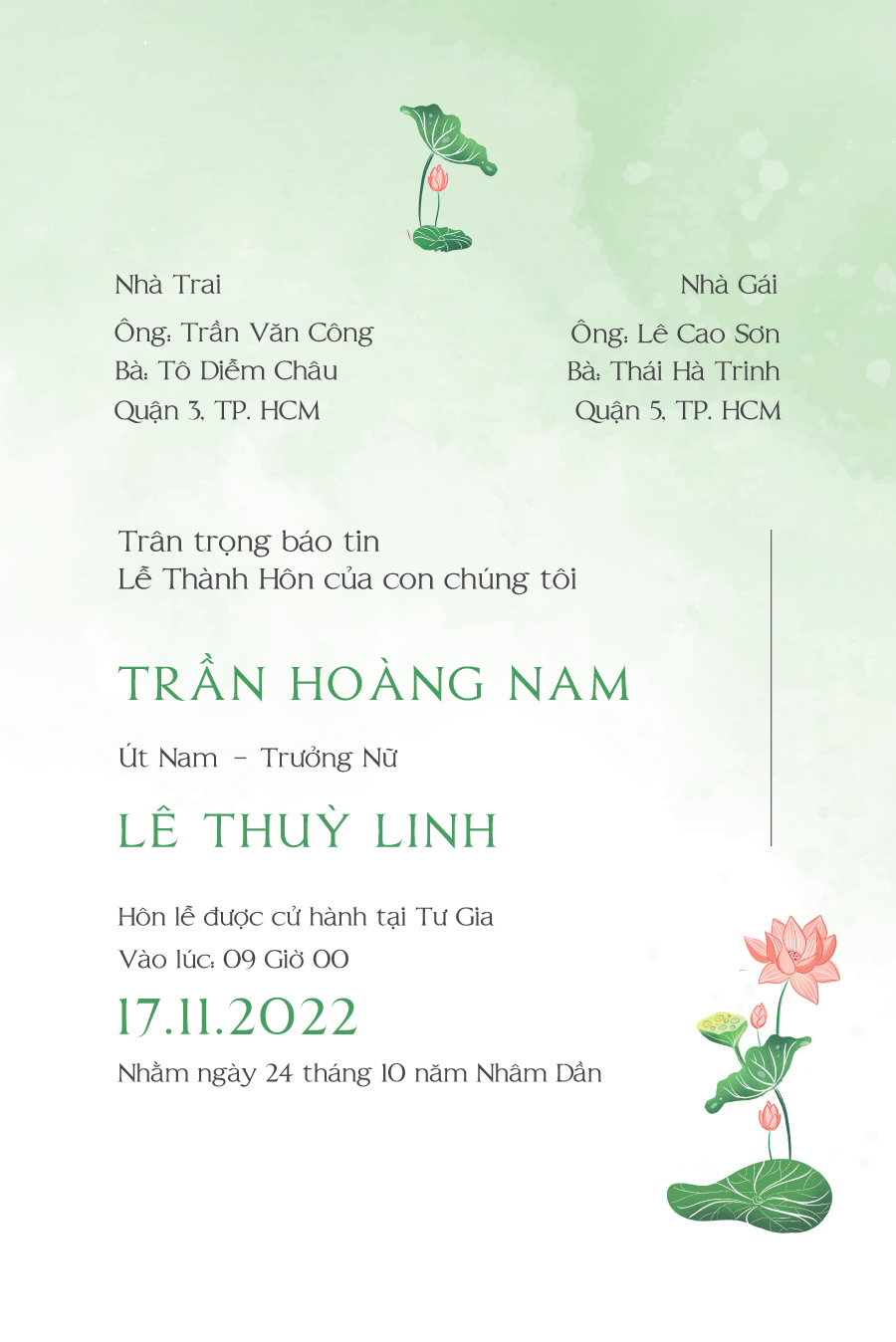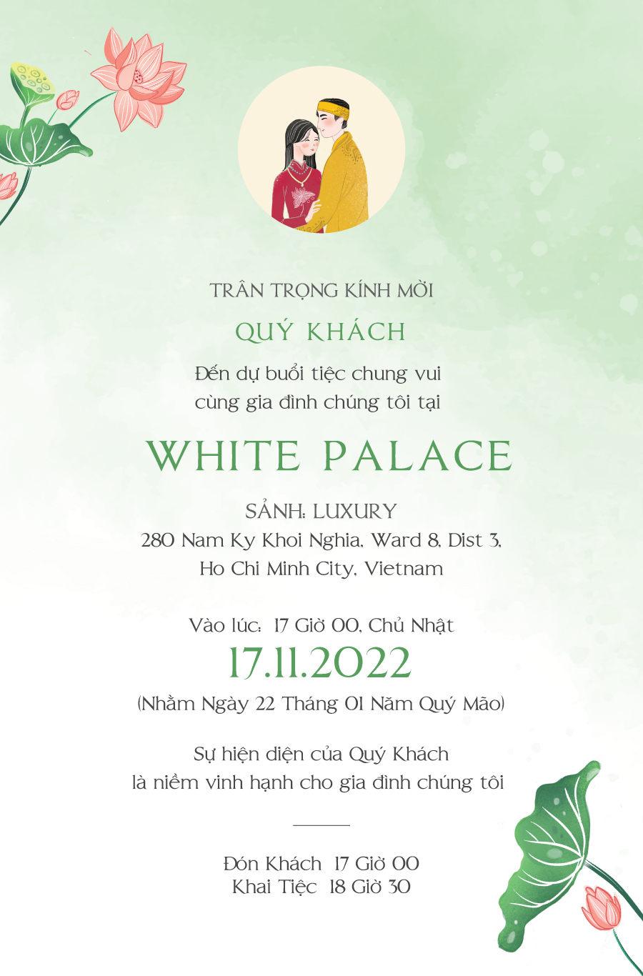 Để thuận tiện cho việc sắp xếp, đưa đón khách đi tiệc cưới, bạn vui lòng cung cấp số điện thoại giúp vợ chồng mình nhé!