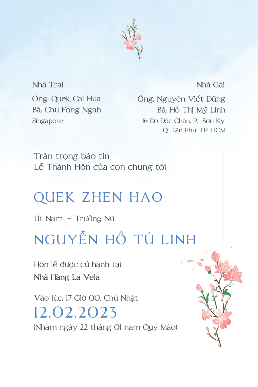 Để thuận tiện cho việc sắp xếp chỗ ngồi, vui lòng phản hồi giúp vợ chồng mình nhé!